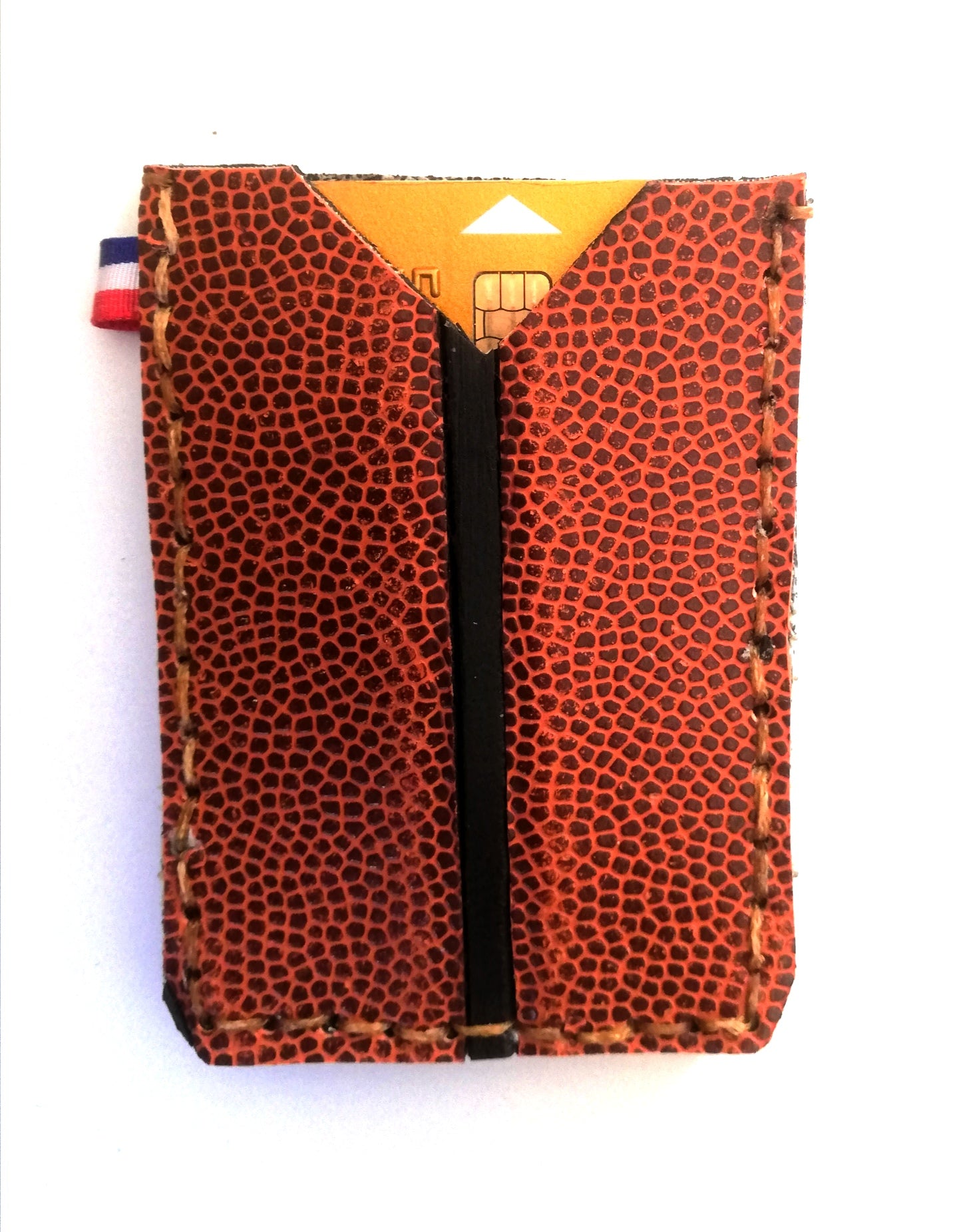 Porte carte réalisé en ballon de basket ou rugby usagé et voué à l'incinérateur.