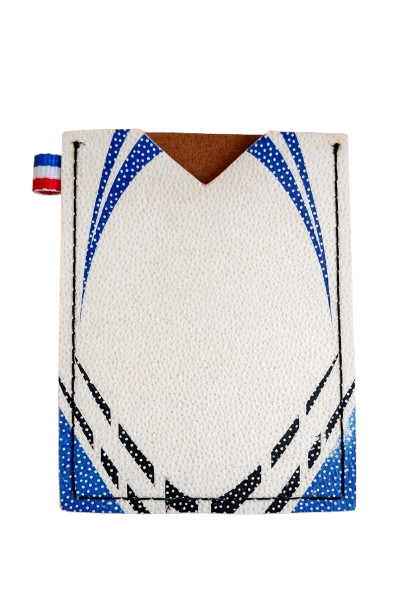 Porte carte réalisé en ballon de rugby usagé et voué à l'incinérateur.