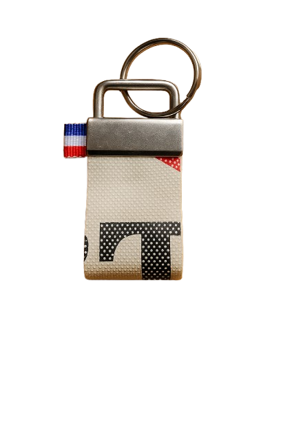 Porte-clé en ballon de rugby recyclés.